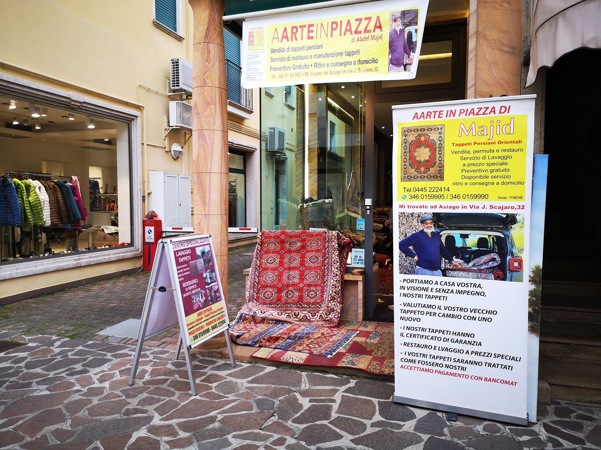 Aarte in Piazza Tappeti, offre un servizio di ritiro e consegna tappeti a domicilio in tutto il Veneto, sia per quanto riguarda la vendita e la permuta, sia per quanto riguarda il restauro e lavaggio tappeti. Siamo presenti con 2 negozi, uno ad Asiago in Via Lobbia, 1 e il secondo negozio ad Abano Terme in